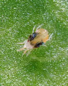 Scale insects suck sap from plants, are stationary and covered by a flattened disk. The black scale is the most common nuisance; it secretes a white manna, which frequently grows a black mould and attracts ants. The San Jose scale is a tiny grey dot that attacks trees. Plague thrips feed in flowers causing petals to brown. The greenhouse whitefly is a small aphid with white wings that attacks weeds and broadleaf vegetables. The European wasp has made an appearance in the 21st century. Other introduced insects include useful ones such as honeybees, dung beetles, and parasitic wasps. Bees however can become a nuisance, and there are feral swarms.
