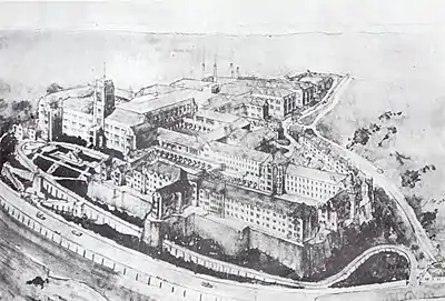 The main campus has a gothic scholastic architecture with a privileged view to the Pacific Ocean. This campus includes more than 3 hectares of green areas making it the biggest urban park in Valparaiso, despite it being closed to the public.[19] In 2008 it was chosen as one of the most remarkable national architectural works of the 20th century.[20]