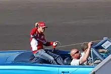 Massa topped the time sheets on five occasions and set the fastest lap for four circuits during the 2007 pre-season testing. However, his 2007 season began with problems. At the season opening Australian Grand Prix, he suffered a gearbox problem during qualifying and required an engine change. Massa started the race from 22nd position due to these problems and a 10-grid-slot penalty for the engine change. He employed a one pitstop strategy for the race and finished in sixth place. Massa's problems continued in Malaysia, where despite qualifying on pole position, the McLarens of Fernando Alonso and Lewis Hamilton overtook him at turn one. Massa ran off the track while attempting to overtake Hamilton, and lost two more places, dropping down to fifth place, where he finished the race. However, his season subsequently improved, as he won the Grands Prix of Bahrain and Spain, both from pole position, and finished third in Monaco. The race stewards at the Canadian Grand Prix disqualified Massa for leaving the pit lane while the red light was showing.[11] After this disqualification, he won one more race at the Turkish Grand Prix,[12] and finished on the podium at six more races, including a second-place finish at his home Grand Prix at the Brazilian Grand Prix. Massa led much of the Brazilian Grand Prix, until yielding the lead to teammate Kimi Räikkönen, thus securing Räikkönen's world championship title. Massa finished the 2007 season ranked fourth in the drivers' standing with 94 points.
