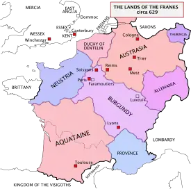 The connection between the Wuffingas ruling dynasty and the abbess Burgundofara at Faremoutiers Abbey was an example of the associations that existed at the time between the Church in East Anglia and religious establishments in Francia. Such associations were partly due to the work of Columbanus and his disciples at Luxeuil: together with Eustasius, his successor, Columbanus inspired Burgundofara to found the abbey at Faremoutiers. It has been suggested that a connection between the disciples of Columbanus, (who strongly influenced the Christians of Northern Burgundy) and Felix, helps to explain how the Wuffingas dynasty established its links with Faremoutiers.[7] Higham notes various suggestions for where Felix may have originated, including Luxeuil, Châlons or the area around Autun. Other historians have made connections between Felix and Dagobert I, who had contact with both King Sigeberht of East Anglia and Amandus, a disciple of Columbanus.[8]