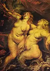 In the nude paintings of the 17th century, such as those by Rubens, the naked women appear quite fat. Upon closer inspection however, most of the women have fairly normal statures, Rubens has simply painted their flesh with rolls and ripples that otherwise would not be there. This may be a reflection of the female style of the day: a long, cylindrical, gown with rippling satin accents, tailored over a figure in stays. Thus Rubens' women have a tubular body with rippling embellishments.[29]:106,316 While stays continued to be fashionable into the 18th century, they were shortened, became more conical, and consequently began to emphasize the waist. It also lifted and separated the breasts as opposed to the 17th century corsets which compressed and minimized the breasts. Consequently, depictions of nude women in the 18th century tend to have a very narrow waist and high, distinct breasts, almost as if they were wearing an invisible corset.[29]:91, 112–116 La maja desnuda is a clear example of this aesthetic. The 19th century maintained the general figure of the 18th century. Examples can be seen in the works of many contemporary artists, both academic artists, such as Cabanel, Ingres, and Bouguereau, and Impressionists, such as Degas, Renoir, and Toulouse-Lautrec. As the 20th century began, the rise of athletics resulted in a drastic slimming of the female figure. This culminated in the 1920s flapper look, which has informed modern fashion ever since.[28]:4[29]:152