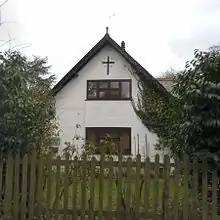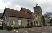 There are four listed buildings in Fernhill, and a further six have been given locally listed status by Crawley Borough Council. Just west of the Balcombe Road, and now within the boundary of Gatwick Airport, are two surviving medieval buildings: Edgeworth House and Wing House. They are attached to each other at right-angles but are of different dates: Edgeworth House (a four-bay timber-framed hall house) is 15th- or early 16th-century,[13][14] while Wing House dates from the mid-16th century. It has Charlwood and Horsham stonework, brick, timber framing and a tiled roof.[15] On Donkey Lane, which leads north from Fernhill Road and becomes a footpath,[3] Lilac Cottage and Old Cottage are listed. Lilac Cottage is partly tile-hung and retains its original (18th-century) chimneys, inglenook fireplace and timber framing.[16] Old Cottage is a similar but older (17th- or early-18th-century) house: it has brickwork, timber framing and exterior tiles on the upper storey.[17]