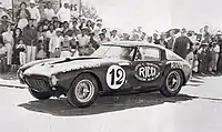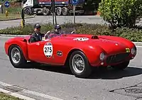 Although intended for the Mille Miglia, the 375 MM was also raced with limited success in the Carrera Panamericana, scoring fourth place in 1953 and finishing second in 1954.[9] Other major successes in 1953 included overall wins at Spa 24 Hours, driven by Giuseppe Farina and Mike Hawthorn duo,[10] 12 Hours of Pescara with Hawthorn and Umberto Maglioli[11] and 12 Hours of Casablanca, won by Farina and Piero Scotti.[12] The 375 MM with Alberto Ascari and Luigi Villoresi, was contesting the 1953 24 Hours of Le Mans alongside its 4.1-litre siblings, to no avail due to a clutch problems.[13] In the 1000 km Nürburgring race of 1953, the 375 MM scored another victory with Giuseppe Farina, this time aided by Alberto Ascari.[14] This race along with Spa 24 Hours counted towards the 1953 World Sportscar Championship, won for Ferrari in due honour to the 375 MM.
