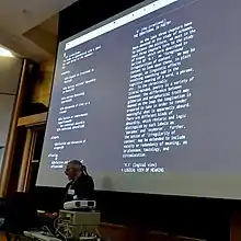 FRESS was used as educational technology for several classes at Brown, probably being the first hypertext system used in education. Most notably it was used for teaching an introduction to poetry in 1975 and 1976. In those days it was difficult to convince faculty in the humanities that computers could be useful in their teaching or work, or to convince the people funding the computer center that writing was an appropriate use of the expensive computers of the time. But English Professor Robert Scholes and two teaching assistants worked with the FRESS team to run a small experiment funded by the National Endowment for the Humanities. They saw hypertext as an attractive new way to present poetry, which is often highly reflexive and full of allusions and references to other works. They also wanted to help students directly interact with the course material, and engage with other students and instructors to collectively add meaning to it. There was only a single Imlac terminal, which students signed up for time on, so only 12 students per course could use FRESS. The students in the section which read and commented on the material via FRESS wrote about three times as much as students in control groups, and seemed to benefit from the use of the system, but given the small number of students in the study, the uncertainty in the results is high.[3][4] A short film was made to document the project,[5] which was rediscovered and shown as part of NEH's 50th anniversary celebration.[6][7]