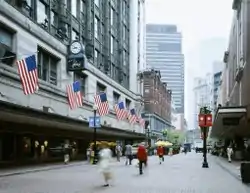 Federated continued to divest "duplicate" properties in shopping malls where Filene's and Macy's were both present; prior to consolidation, Filene's operated 47 locations across Connecticut, Maine, Massachusetts, New Hampshire, New York, Rhode Island and Vermont.[7][9] In regards to Downtown Crossing, however, the company remained uncertain whether the Filene's Department Store or the neighboring former Jordan Marsh flagship store (that became Macy's in the mid-1990s) would be retained.[8] Then-Boston Mayor Thomas Menino expressed his preference for "marrying Macy's to the Filene's building."[10] Ultimately, the existing Macy's location was left intact and the Filene's store was closed in 2006.[11]