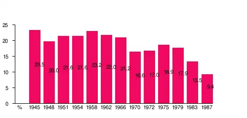 | 1962 | 63 | 451 750 | 20,5% | Paavo Aitio |