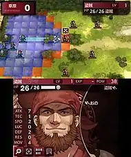 As with other Fire Emblem games, Fire Emblem Echoes uses a turn-based system where each unit on both sides is given their chance to move and act. Battles take place on a grid-based battlefield, with turns being given for players and enemies. During an attack, the view transitions from a top-down perspective to a third-person view.[5] Unlike many other Fire Emblem titles, the Weapon Triangle — a rock–paper–scissors system where certain weapons have advantages over others — and limited weapon durability are removed. Units instead have standard weapons that last the whole campaign, and can be given special weapons which replace their standard weapon and grant passive advantages. Each unit can only carry one weapon, which grows in power as its wielder gains experience points and levels up through battle.[6][8] Each unit is assigned a unique character class, with the class dictating their weapon and consequently their actions; archers can attack at a distance, melee fighters are limited to close-range attacks, while mages must sacrifice a portion of their health to perform an action. Once a unit has reached a certain level, their class can be evolved into more powerful versions. Villager NPCs can also be recruited in towns; while initially weak, they can be strengthened and assigned any available character class.[7][8]