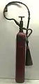 The soda-acid extinguisher was first patented in 1866 by Francois Carlier of France, which mixed a solution of water and sodium bicarbonate with tartaric acid, producing the propellant CO2 gas. A soda-acid extinguisher was patented in the U.S. in 1881 by Almon M. Granger. His extinguisher used the reaction between sodium bicarbonate solution and sulfuric acid to expel pressurized water onto a fire.[1] A vial of concentrated sulfuric acid was suspended in the cylinder. Depending on the type of extinguisher, the vial of acid could be broken in one of two ways. One used a plunger to break the acid vial, while the second released a lead stopple that held the vial closed. Once the acid was mixed with the bicarbonate solution, carbon dioxide gas was expelled and thereby pressurized the water. The pressurized water was forced from the canister through a nozzle or short length of hose.[2]