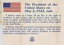 - Roosevelt, Franklin D. "Fireside Chat 24: On the Coal Crisis (May 2, 1943)". Miller Center of Public Affairs, University of Virginia. Archived from the original on March 4, 2016. Retrieved September 14, 2015.