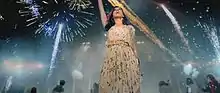 MTV praised Perry's vocals, though felt the lyrics were "clunky".[8] Slant Magazine stated that the song is "not an actively painful listen. Sure, the would-be inspirational lyrics ('Baby you're a firework/Come on show them what you're worth') are nonsensical, ... but the chorus gains some momentum and the song would work well enough in a club setting that you could forgive its otherwise glaring weaknesses."[9] Stephen Thomas Erlewine of AllMusic chose "Firework" among the top tracks on the album,[10] Nick Levine of Digital Spy gave the song five out of five stars, calling it "a straight up self-empowerment anthem wrapped in a Coldplay-on-poppers club banger from the Stargate team."[11] PopMatters wrote that "Firework" is "the record's last hurrah; though nothing particularly memorable.....'Firework' has at least a bit of staying power".[12] The Washington Post described the song as "too mushy".[13] Al Fox of BBC Music said that the song "displays a breezy maturity and serious set of pipes, a true demonstration of Perry's musicianship without contradicting the kittenish mischief of the bigger picture."[14] The song was nominated for Record of the Year at the 54th Grammy Awards.