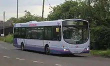 As part of its corporate branding, First subsequently removed all local branding for its bus services, buses simply carried the 'First' brand, although each company still operated independently. In 2012, the group began to introduce a new purple, white and lilac livery to its bus fleets, which also reinstated local branding.[59] In January 2014, the company rebranded its First Somerset & Avon operations in Bridgwater and Taunton as The Buses of Somerset, using a two-tone green livery.[60][61]