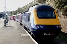 Hull Trains carries a predominantly blue livery, including white, pink and purple. This was also used by First Great Western until 20 September 2015, when the franchise was rebranded as Great Western Railway, with a new logo and dark green livery paying homage to the original Great Western Railway.[62]