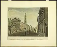 Back in London, Wesley became friends with Moravian minister Peter Boehler and joined a Moravian small group called the Fetter Lane Society.[19] In May 1738, Wesley attended a Moravian meeting on Aldersgate Street where he felt spiritually transformed during a reading of Martin Luther's preface to the Epistle to the Romans. Wesley recounted that "I felt my heart strangely warmed. I felt I did trust in Christ, Christ alone for salvation, and an assurance was given me that he had taken away my sins, even mine, and saved me from the law of sin and death."[20] Wesley understood his Aldersgate experience to be an evangelical conversion, and it provided him with the assurance he had been seeking. Afterwards, he traveled to Herrnhut and met Zinzendorf in person.[19]
