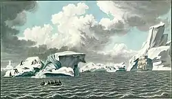 In 1818, there were rumors that Barrow planned a double expedition with four ships to reach the pole from both the Bering and the Davis Strait. When Alexander I heard about Barrow's plans, he ordered the sloops urgently outfitted and sent.[21] However, counter admiral Lev Mitin noted that Bellingshausen's expedition was explicitly scientific and did not imply the goals of territorial expansion.[22] According to Bulkeley, the lack of political aims in the expedition program does not signify anything since neither the Admiralty instructions for the 1818–1819 British Arctic expedition of Frederick William Beechey, William Parry, and John Ross, nor Franklin's lost expedition of 1845–1848, had any written political aims.[23] Thus, Bulkeley claimed that without any political aims, the expedition would be much less effective.[24]