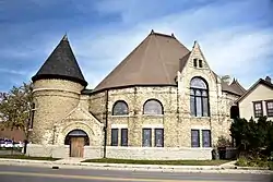 The First Universalist Church in Elgin, Illinois was built in 1892. It was designed by George Hunter to resemble a pocket watch in Richardsonian Romanesque style.[1] The church was listed on the National Register of Historic Places in 1980. It was subsequently included as a contributing property in the Elgin Historic District.[1]