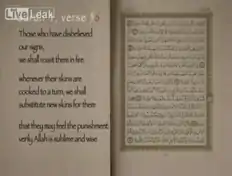 Suras are juxtaposed to video clips of Imams stating Islamic teaching, and videos of violent atrocities committed in the name of Islam, including major terrorist attacks.[32]
