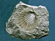 | A fossil valve of Flabellipecten flabelliformis. | |