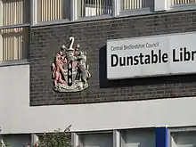 Bedfordshire County Council had its coat of arms created in 1951 as part of the Festival of Britain celebrations. The coat of arms became the symbol of the county being placed on many public buildings and signs. The council used the banner of arms as a flag until it was abolished in 2009.