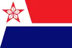 The flag of the Regional Council represented the governmental body which oversaw matters related to the outlying areas of the territory during the colonial period. The flag itself featured a stylised white R at a 45-degree angle on a dark green background.