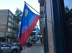 Despite a lack of interest from the city council and mayor, there was a grassroots support-building effort[16] to build community interest, which led local media to call it "The People's Flag".[2][17] Local media identified the flag as a symbol of the community[4] and it was displayed at homes, businesses[3] and even a local march.[2] Downtown businesses contributed to the grassroots effort[3][16] through flag-related sales.[2][3]