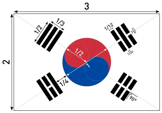 - 국기의 제작 [Geometry of the National Flag] (in Korean). Ministry of the Interior and Safety. 2017. Retrieved 6 August 2017.