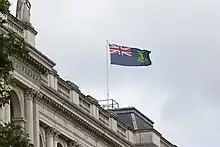 The Governor of the British Virgin Islands has a separate flag (also seen below), a Union Flag defaced with the coat of arms. This design is similar to flags of the other Governors in British overseas territories. The gubernatorial flag is for use at Government House when the governor is in residence or within the territory. It is also on the bonnet of the motor-car in which the governor travels on official business. The current governor, in office since 15 August 2014, is John Duncan.[8]