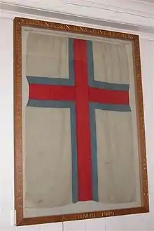 The flag of the Faroe Islands is an offset cross, representing Christianity. It is similar in design to other Nordic flags – a tradition set by the Dannebrog of Denmark,[1][2] of which the Faroe Islands are an autonomous territory.[3]