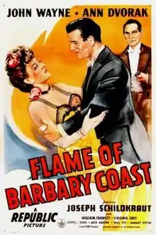 Flame of Barbary Coast is a 1945 American Western starring John Wayne, Ann Dvorak, Joseph Schildkraut, William Frawley, and Virginia Grey. The movie was scripted by Borden Chase and directed by Joseph Kane.[1][2]