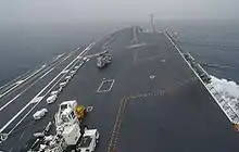The flight deck of an aircraft carrier is the surface from which its aircraft take off and land, essentially a miniature airfield at sea. On smaller naval ships which do not have aviation as a primary mission, the landing area for helicopters and other VTOL aircraft is also referred to as the flight deck. The official U.S. Navy term for these vessels is "air-capable ships".[1]