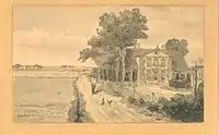 Flintholm takes its name from an estate which was founded when a large area of farm land which had until then belonged to Ladegården, a farm under Copenhagen Castle, was auctioned off in lots in 1765. It was named after Jacob Nielsen Flindt, a farmer, who acquired the property in the 1790s. In 1827, most of the land was sold off to a neighbouring estate, Grøndal, while the house, including a small wood and a garden, was sold to H. J. Grove, a post officer, who used it as a summer retreat.[1]