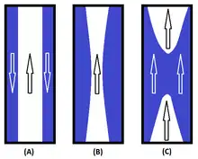 Flooding refers to a fluid flow phenomenon whereby counter-current two-phase flow is reversed and runs concurrent in the direction of the initial gas/vapor phase flow when filling, or "flooding", a nuclear reactor core with coolant.[1] This phenomenon is generally discussed with respect to a loss-of-coolant accident (LOCA). As this phenomenon proceeds, annular flow running counter-current begins as liquid water is inserted into the system. Then if conditions are correct, the frictional force at the gas-liquid interface begins to reverse the flow of the liquid. Finally, the flow of the liquid reverses, running concurrently in a slug (or other) flow regime. The significance of this phenomenon is that, if not properly designed for, it can present issues when trying to fill the core with liquid (the phenomenon works against gravity, forcing liquid out of the core).