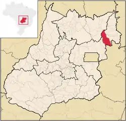 The distance to Goiânia is 438 km. Highway connections with Goiânia are made by BR-153 / Anápolis / GO-060 / Alexânia / Planaltina / Formosa / GO-020 / BR-030 / Vila Boa / GO-114.[2]