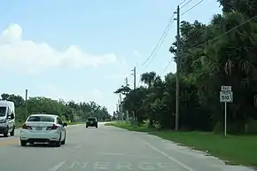 Starting its 8.4 miles (13.5 km) at CR 512 at Vero Lake Estates, the road begins as a north-south route for 1.2 miles (2 km) as 90th Avenue, then turns east to Wabasso as Wabasso Road. After 70th Avenue, it intersects with a major junction called County Road 615. 1 mile (1.6 km) east of this point is County Road 613, 0.5 miles (0.8 km) east of that point is County Road 605 in Wabasso. A block east of the road is US 1, ending CR 510. That section of Wabasso Road ends at 108th Avenue. For more information, see Wabasso Road West.