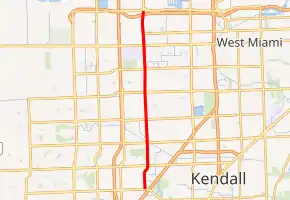 It passes through residential neighborhoods with apartment complexes, strip malls, and Miami-Dade County Parks (Tamiami Park at Coral Way, Kendall Indian Hammocks Park between SR 94 and SR 986). It is also a primary access route for two major regional malls on its northern end.
