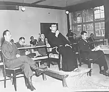The rate of executions increased during the final months of the camp. The SS liquidated prisoners who they suspected might try to escape or organize resistance; most of the victims were Russians.[73] Some of them were high-profile prisoners who had been kept alive previously for interrogation. During the last days of the camp's existence, the SS executed thirteen Allied secret agents and seven prominent German anti-Nazis, including former Abwehr head Wilhelm Canaris and the Confessing Church theologian Dietrich Bonhoeffer.[74][36] In all, the SS had executed at least 2,500 people at Flossenbürg.[75]