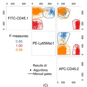 - Aghaeepour, N.; Nikolic, R.; Hoos, H. H.; Brinkman, R. R. (2011). "Rapid cell population identification in flow cytometry data". Cytometry Part A. 79A (1): 6–13. doi:10.1002/cyto.a.21007. PMC 3137288. PMID 21182178.