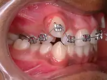 - Fluoride application around orthodontic bands and brackets[9] (See image to right)