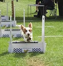 Flyball is not limited to the breed's size, as smaller dogs such as Patterdale Terriers, Jack Russell Terriers, Whippets and even miniature poodles, often compete with great success in mixed-breed teams (teams consisting of dogs of various sizes and breeds).[3] Smaller dogs are often prized as the hurdle height is based on the height of the smallest dog in the team, commonly known as a height dog. Their only limitation is whether they can trigger the release pad, and small dogs often have to fully jump on it to do so.