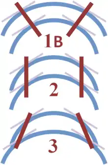 - Disharmonic: Folds in adjacent layers with different wavelengths and shapes[8]