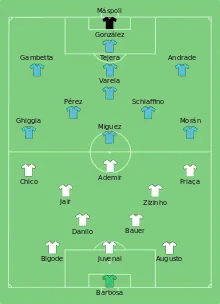 At the end of the 1930s, the previously unknown Brazilian Gentil Cardoso, who, as a jack-of-all-trades, had regularly travelled to Europe and devoted his free time to watching football, tried to introduce a new tactical system. He had witnessed the emergence of the so-called WM formation with English club Arsenal F.C., and saw this as the solution to the Brazilian football problem. In this system, the attackers deploy in a "W" formation, and the midfielders and defenders in an "M" formation" (3-2-2-3). This can be seen in the tactical set-up for the final between Brazil and Uruguay in 1950 (see right). The outside defenders, or full-backs, (in this arrangement, Bigode and Augusto) cover the wing-backs of the opposing team. The inner defense or half-backs (here Danilo and Bauer) face the back line of three defenders and counter attackers trying to breach the midfield defense; the stopper, or centre-back, (in this arrangement, Juvenal) stands between the two outside defenders and has the primary task of dealing with the opposing middle attacker or inside forward. Cardoso managed to secure a position as coach of a small Rio de Janeiro club. He introduced the formation and trained the players in it, but saw that the game did not correspond to the British variant that he had seen. Copying the British style of play turned out to be just not possible. Cardoso's attempt failed.
