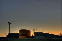 Sun setting behind Foote Field.
