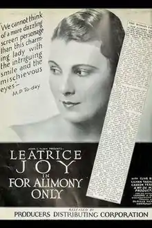 For Alimony Only is a 1926 American silent drama film directed by William C. de Mille and starring Leatrice Joy, Clive Brook, and Lilyan Tashman.[1]
