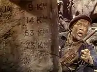 While the guerrilla fighters—Pablo, Pilar, and María—create a diversion for Jordan and Anselmo, the two men plant and detonate the dynamite, costing Anselmo his life when he is hit by a piece of debris from the exploding bridge. While the guerrillas are escaping on horseback, Jordan is maimed when a fascist tank shoots his horse out from under him. Jordan cannot feel his legs and he knows that if his comrades stop to rescue him, they too will be captured or killed. He bids goodbye to María and ensures that she escapes to safety with the surviving guerrillas. Armed with a Lewis machine gun, he waits until the horse-mounted fascist soldiers appear in his gun sights. He then pulls the trigger, firing a sweeping barrage at the oncoming soldiers. The film ends with Jordan firing the Lewis gun directly at the camera.