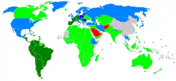 The Holy See currently has diplomatic relations with 183 sovereign states[14] (including the partially internationally recognized Republic of China) and, in addition, with the sovereign entity Order of Malta and the supranational union European Union.[15] The Holy See also has established official diplomatic relations with the State of Palestine.[13]