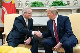 ![]() The United States shares a unique and often complex relationship with the United Mexican States. A history of armed conflict goes back to the Texas Revolution in the 1830s, the Mexican–American War in the 1840s, and an American invasion in the 1910s. Important treaties include the Gadsden Purchase, and multilaterally with Canada, the North American Free Trade Agreement which was changed in the Trump era to the United States–Mexico–Canada Agreement. The two countries have close economic ties, being each other's first and third largest trading partners. They are also closely connected demographically, with over one million US citizens living in Mexico and Mexico being the largest source of immigrants to the United States. Illegal immigration and illegal trade in drugs and firearms have been causes of differences but also of cooperation.[24][25] | |