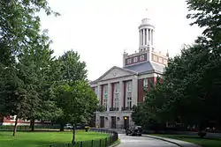 Philip Birnbaum and Alfred Kaskel also designed and constructed numerous apartment buildings scattered throughout Forest Hills.[35] These include the Grover Cleveland, the Van Buren Apartments, the Thomas Jefferson, the Maplewood, the Richard Apartments, the Stephen Apartments, the James Madison, the Cedar Apartments, the Howard Apartments, the James Monroe, the Nathan Hale, the St. Regis, the Roanoke, and the Kennedy House. Birnbaum and Kaskel's buildings largely remain standing, and are distinguished by their spacious lobbies, interior courtyards with fountains, curved brick corner terraces, and sunlit exposures.[36][34] Other notable high-rise apartment buildings include the Continental (on 108th Street), the Pinnacle, Parker Towers, the Windsor and a 17-story luxury condo building completed in 2014, the Aston.