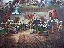 - The Court of Liberty features statues of George Washington and Thomas Jefferson and the Birth of Liberty mosaic. At 162 feet (49 m) long and 28 feet (8.5 m) high, Birth of Liberty is the largest historical mosaic in the United States. It is composed of ten million pieces of Venetian glass and depicts twenty-five scenes from early America, from 1619–1787.