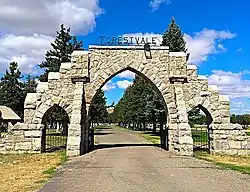 Forestvale Cemetery is a historic cemetery in Helena, Montana. It was established in 1890 for the Helena Cemetery Association and laid out by Harry V. Wheeler.[2] The arched stone entrance was built in 1890.[2] Among almost 15,000 gravestones there is a mausoleum, the original property included a house for the sexton.[2] Notable burials include Ralph E. DeCamp,[3] James Fergus, Samuel Thomas Hauser, Charles Arthur Broadwater, and Wilbur F. Sanders,[2] The cemetery has been listed on the National Register of Historic Places since February 21, 1990.[1]