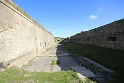 Between the world wars, the battery of la Crèche was modernized. The old armament was replaced by four 194 mm guns (Mle 1902) each having two ammunition bunkers. The perimeter wall was partially demolished to make room for them.