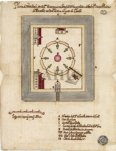 There are three fortresses here, one French, one English and one Portuguese. They are all built according to the same plan. […] At each angle there is an earthen bastion […] each outfitted with twelve iron cannons. Each fort is surrounded by a moat twenty feet wide with the same depth and in which water is rarely found. There is a bridge at the entrance that can easily be lifted in case of an attack. The French fort is the best maintained one while the Portuguese one is in the worst condition. They all have their gunpowder magazines, which are roofed with thatch, at the center of the courtyard.[8]